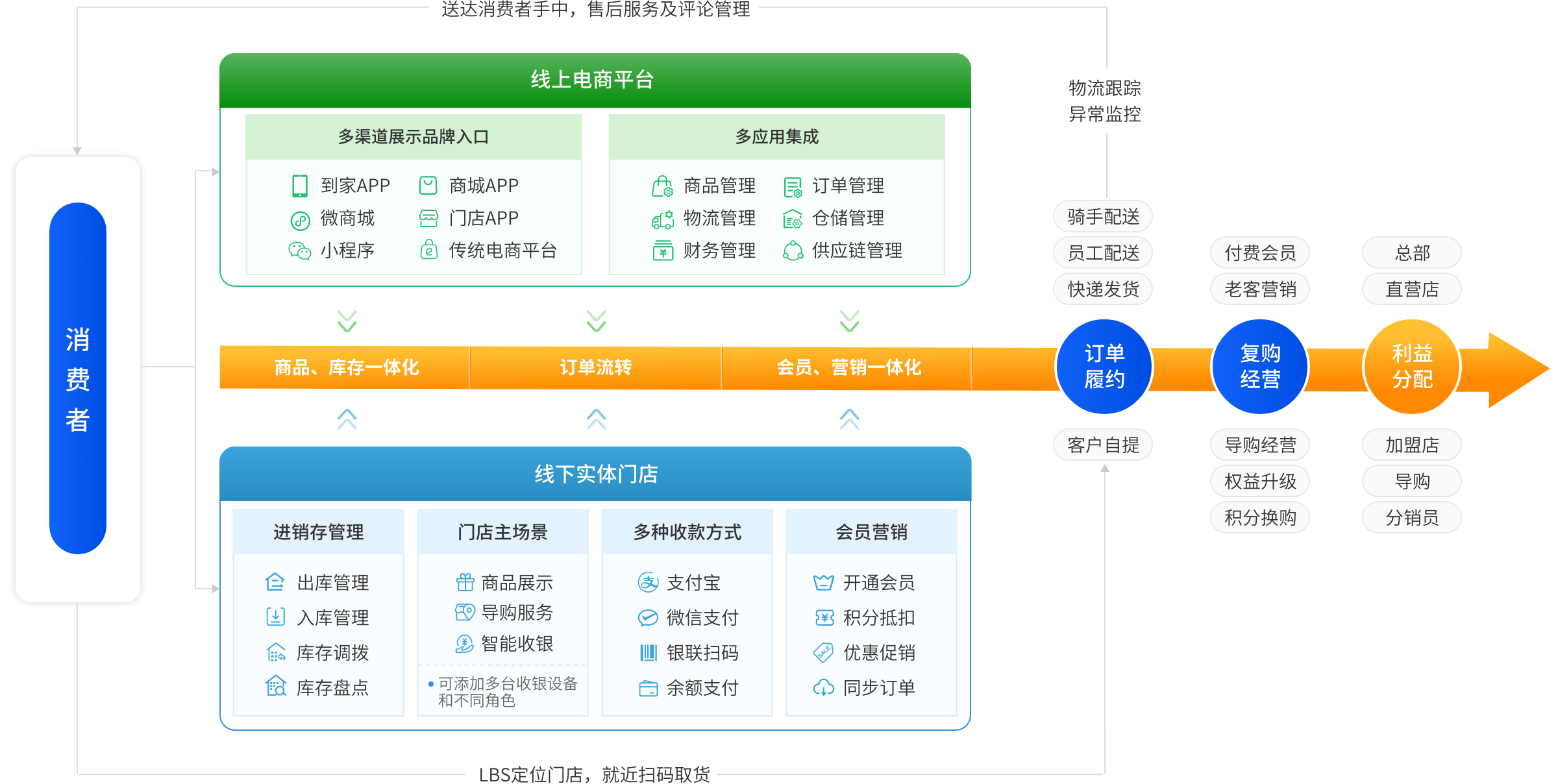 达成“线上下单->附近门店/前置仓配货->即时配送”的智慧闭环优势