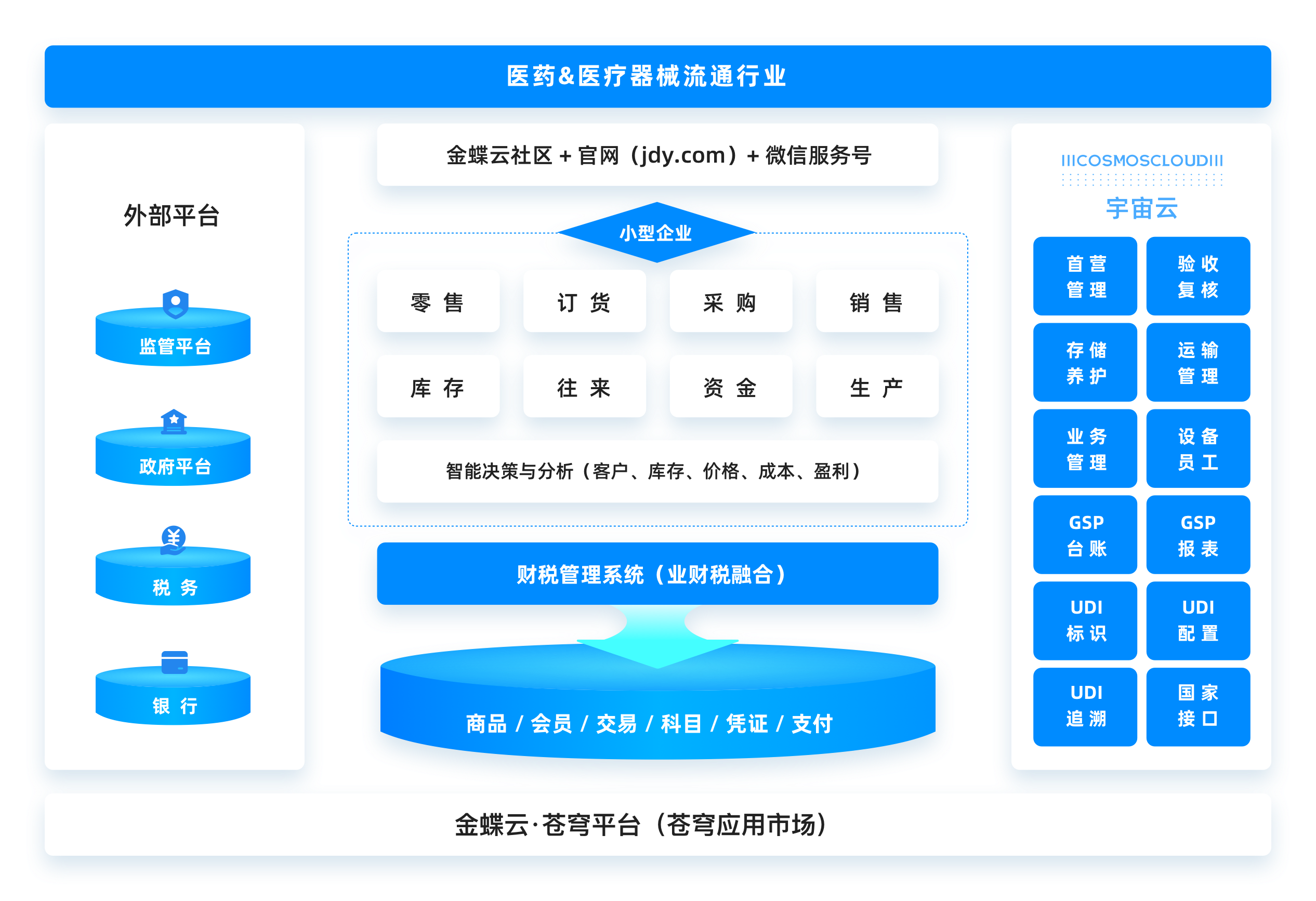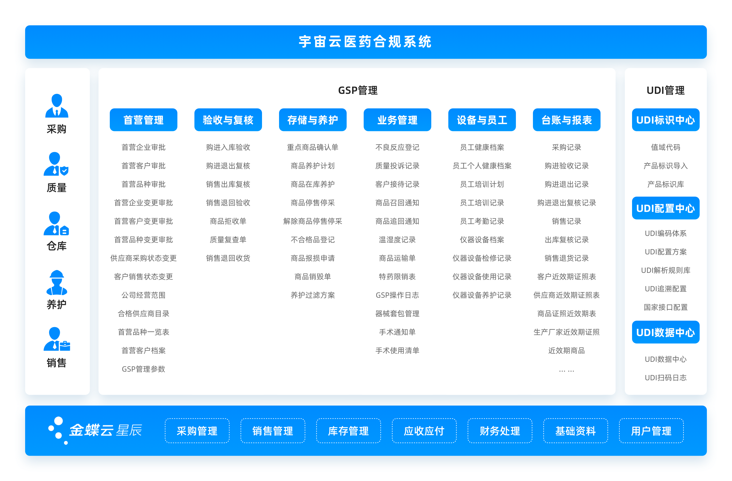 使用产品:金蝶AI·星辰 财务+进销存+宇宙云医药合规系统